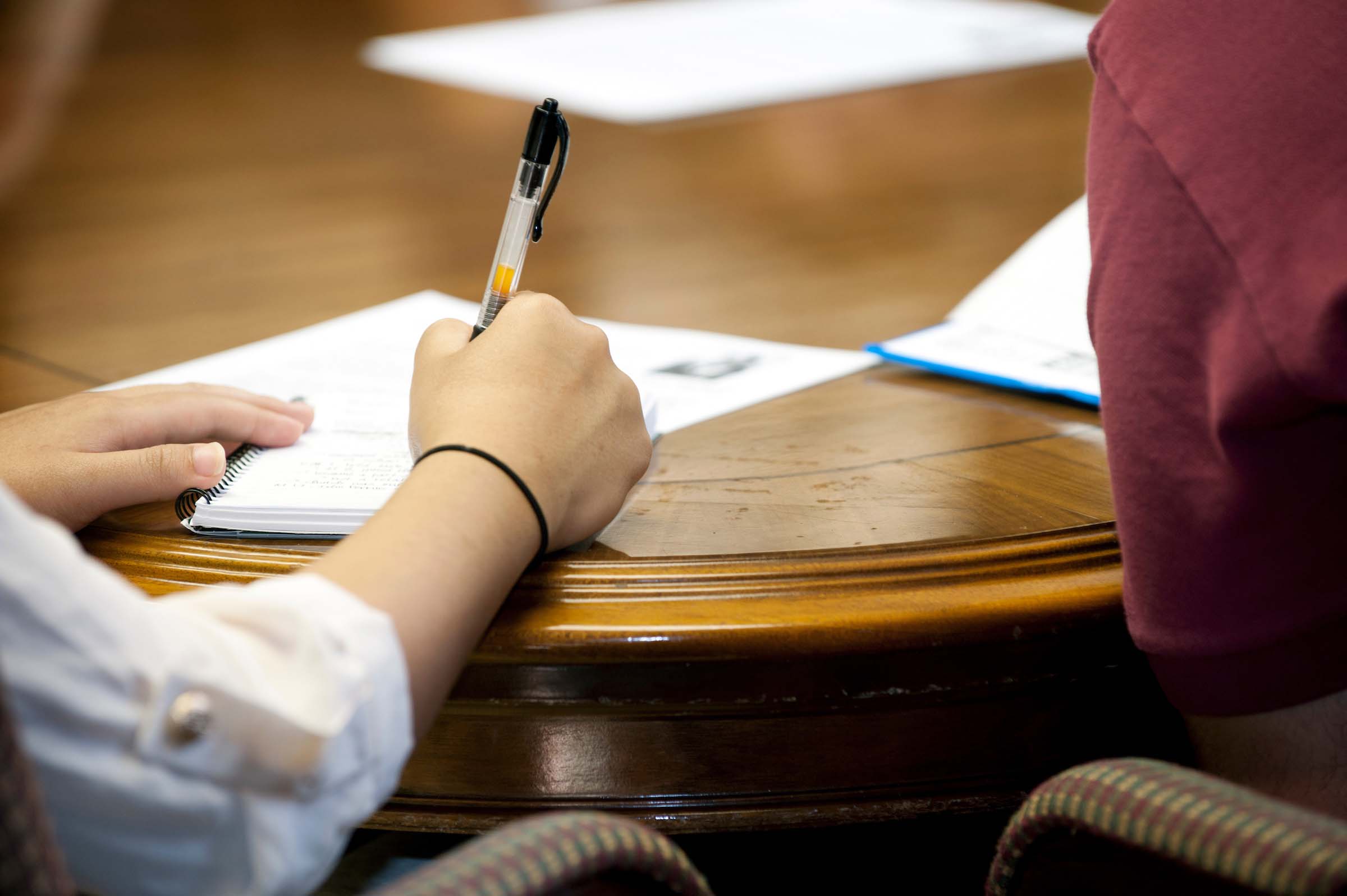 Background Image Alternative Text: A student taking notes at a table
